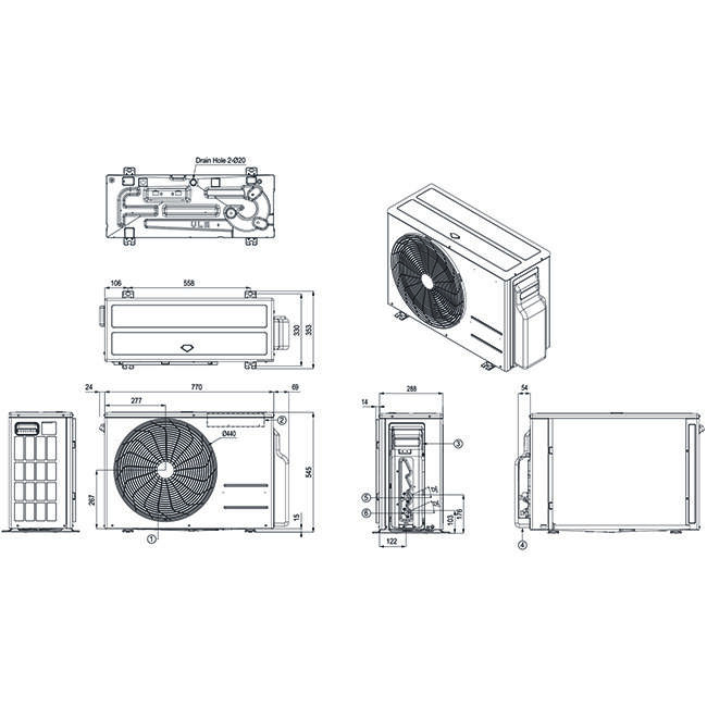 Die Installation dieser Single-Split-Klimaanlage ist einfach und schnell, mit klaren Anweisungen in der mitgelieferten Bedienungsanleitung. Die Inneneinheit hat Abmessungen von 837 x 308 x 192 mm (BxHxT) und die Außeneinheit misst 717 x 495 x 230 mm (BxHxT). Beide Einheiten sind kompakt gestaltet, um Platz zu sparen und sich ästhetisch in Ihre Innen- und Außenräume zu integrieren.