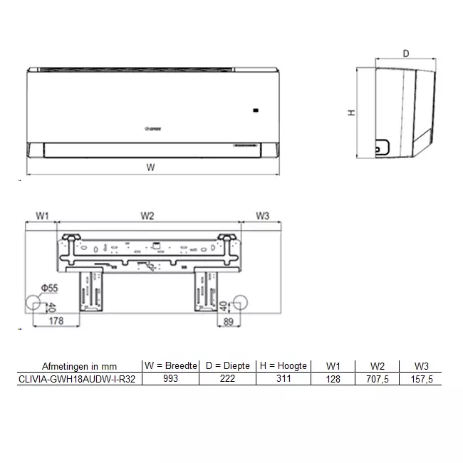 Artikelnummer:: CLIVIA-GWH12AUCW-I-R32