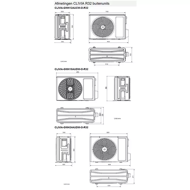 Breite des Außengeräts |
