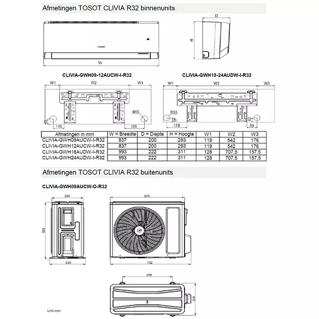 Das Tosot Clivia Inverter Set ist ein hochwertiges Klimagerät. Es hat eine Kühlleistung von 7,1 kW, kann aber mit seiner Inverter-Technologie auch heizen. Außerdem verwendet dieses Klimagerät das umweltfreundlichere Kältemittel R32. Außerdem hat dieses Klimagerät einen SEER-Wert von 7,0 W/W und einen SCOP-Wert von 4,3 W/W, was es sehr effizient und wirtschaftlich macht. Der Tosot Clivia Inverter verfügt über fortschrittliche Funktionen, die seine Verwendung erleichtern. Zum Beispiel kann er sich mit dem WLAN-Netzwerk verbinden, so dass Sie ihn zusätzlich zur Fernbedienung auch mit einer App steuern können. Außerdem müssen Sie sich keine Sorgen über Lärmbelästigung im Schlafzimmer machen, denn das Innengerät erzeugt nur 33 dB.